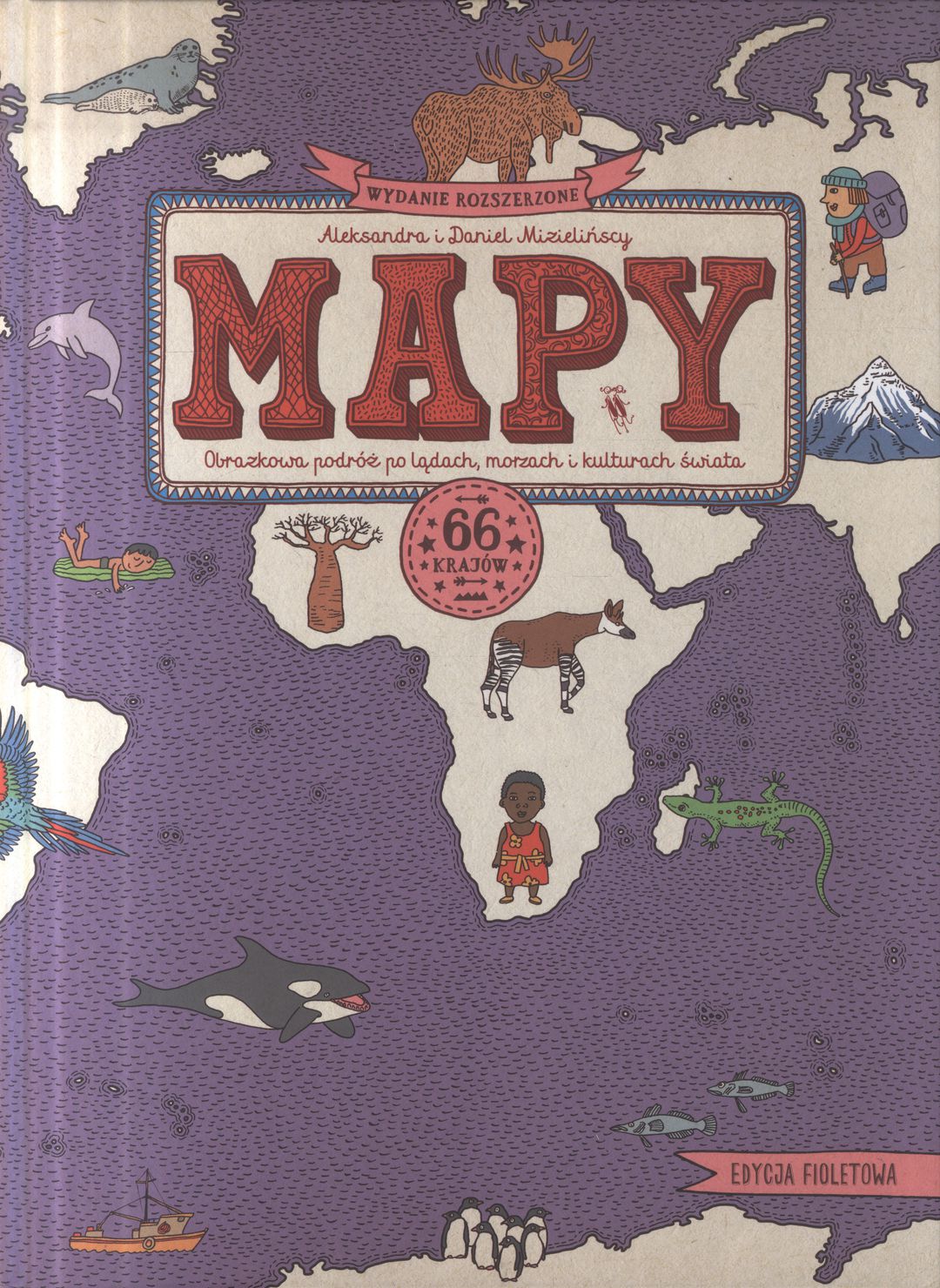 Mapy / Aleksandra i Daniel Mizielińscy. - Wydanie VII rozszerzone, edycja fioletowa. - Warszawa : Wydawnictwo Dwie Siostry, 2023. - 1 atlas (153, [3] strony) : mapy, ilustracje wielobarwne ; 38 cm.