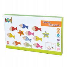 wykonana z drewna 2 wędki z magnesami 10 ryb z liczbami oznaczającymi punkty 2 rozgwiazdy pudełko pomalowane od środka przypomina akwarium pomaga w rozwijaniu kreatywności pobudza wyobraźnię