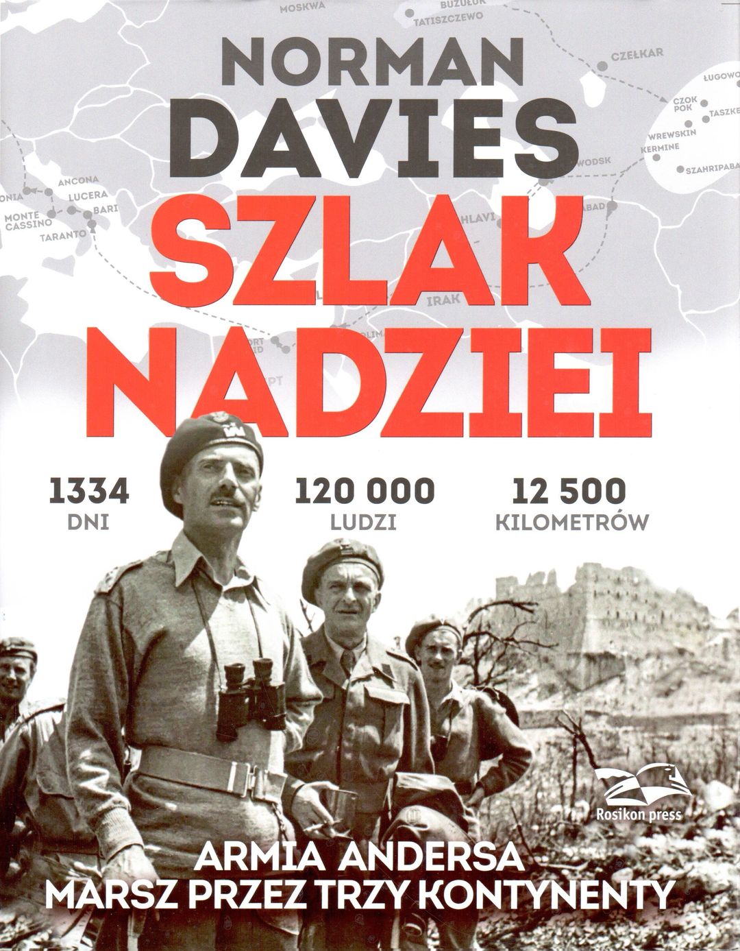 Marsz Armii Andersa nie ma sobie równych w historii: sto dwadzieścia tysięcy ludzi przeszło dwanaście tysięcy kilometrów. Rozsypani po "nieludzkiej ziemi" Polacy stawili się na wezwanie generała Andersa, licząc na ocalenie. Przekraczali granice Związku Sowieckiego z nadzieją na powrót do domów. Gdy zwyciężali Niemców pod Monte Cassino, Ankoną i Bolonią, wiedzieli już, że te nadzieje pozostaną niespełnione. To oni stali się namiastką wolnej Polski. Żołnierzom towarzyszyli cywile: dzieci, kobiety, starcy. Próbowali normalnie żyć. Działały szpitale, szkoły, sierocińce. Trudy marszu, codzienne rozterki, poświęcenie w boju, drobne radości i wielkie dramaty składają się na opowieść o jednym z najbardziej niezwykłych rozdziałów II wojny światowej. Nikt wcześniej nie opowiedział jej tak, jak czyni to teraz Norman Davies. Wraz z fotografem Januszem Rosikoniem wyruszył śladem Armii Andersa. Odwiedził Rosję, Iran, Izrael, Włochy, a nawet Nową Zelandię i Afrykę. Książka zawiera nieznane relacje świadków, niepublikowane materiały archiwalne oraz zdjęcia dokumentujące tę fascynującą podróż Szlakiem Nadziei.